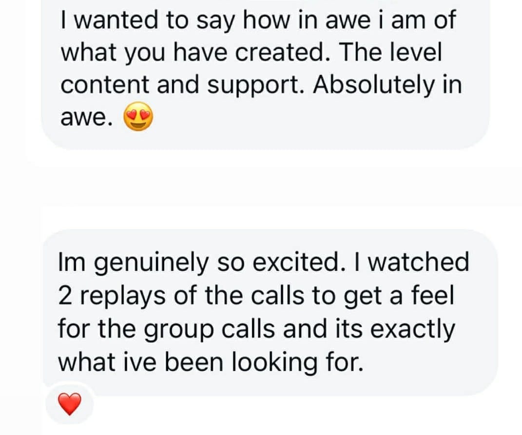 Private group chat to ask for feedback or support from your sister's, set weekly, intentions, celebrate wins & collaborate.