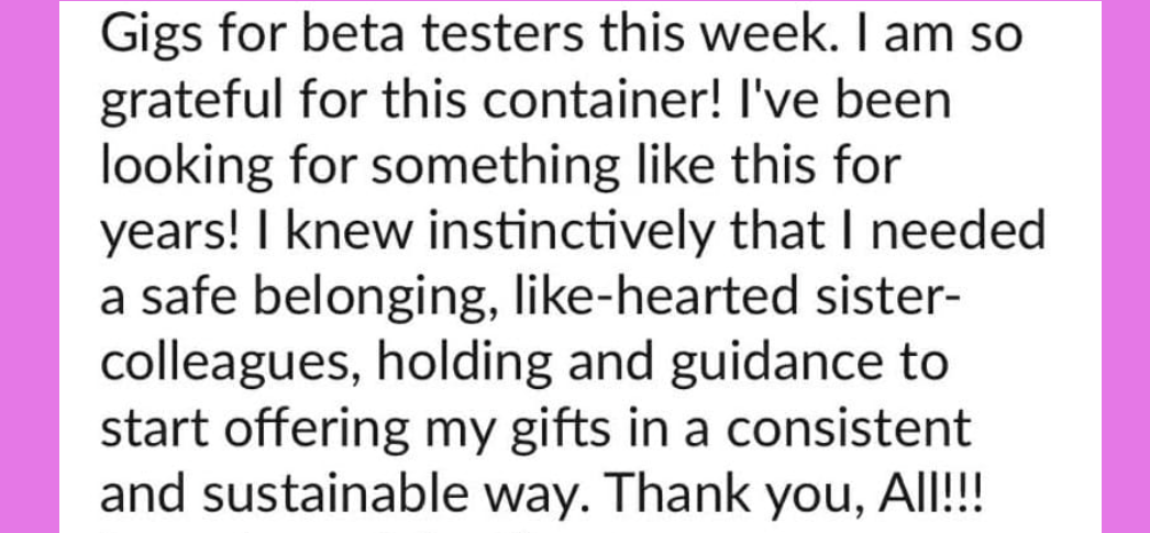 or you could plug into a space where your magic gets mirrored back to you. Where referrals and collaborations happen naturally. And showing up gets to feel safe, supported, and celebrated.